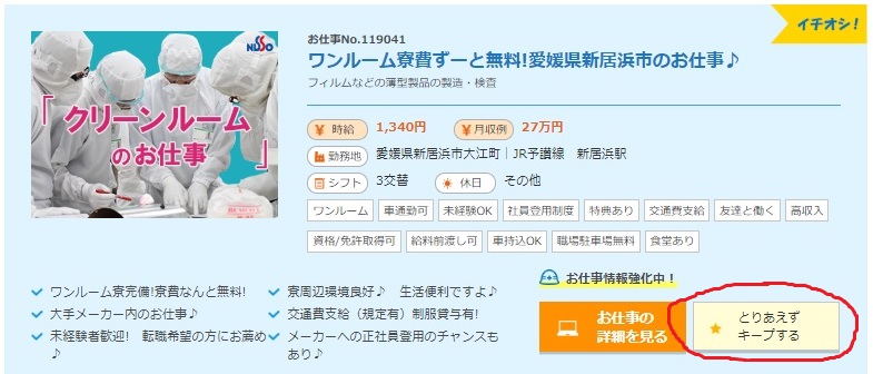 ↑キープリストは工場求人ナビのサイトの右側にあります。